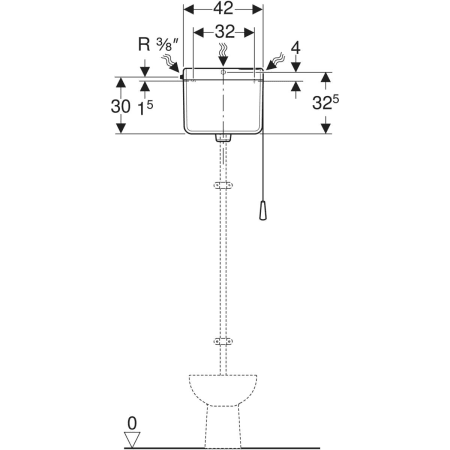 Priključni set za predzidni vodokotlić, ø 32 mm, za visoku montažu